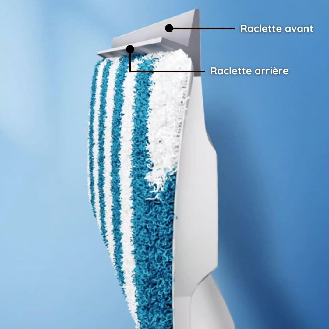 Tête double-face ultra-efficace : brosse + raclette pour laver et sécher sans traces