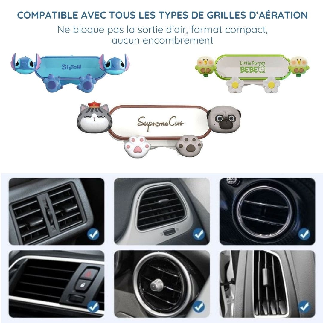Vous cherchez un support de téléphone qui ne glisse pas, qui protège votre appareil dans les secousses, et qui apporte une touche de fun à votre voiture ?
