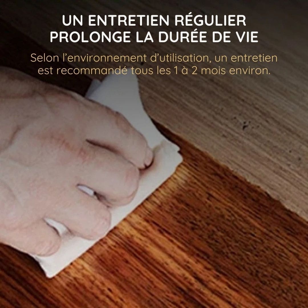 Cette pâte de cire d’abeille combine restauration, nutrition et protection. Elle s’applique facilement, pénètre profondément, et redonne vie aux surfaces ternies ou abîmées, sans produit chimique agressif, pour un rendu naturel et durable.