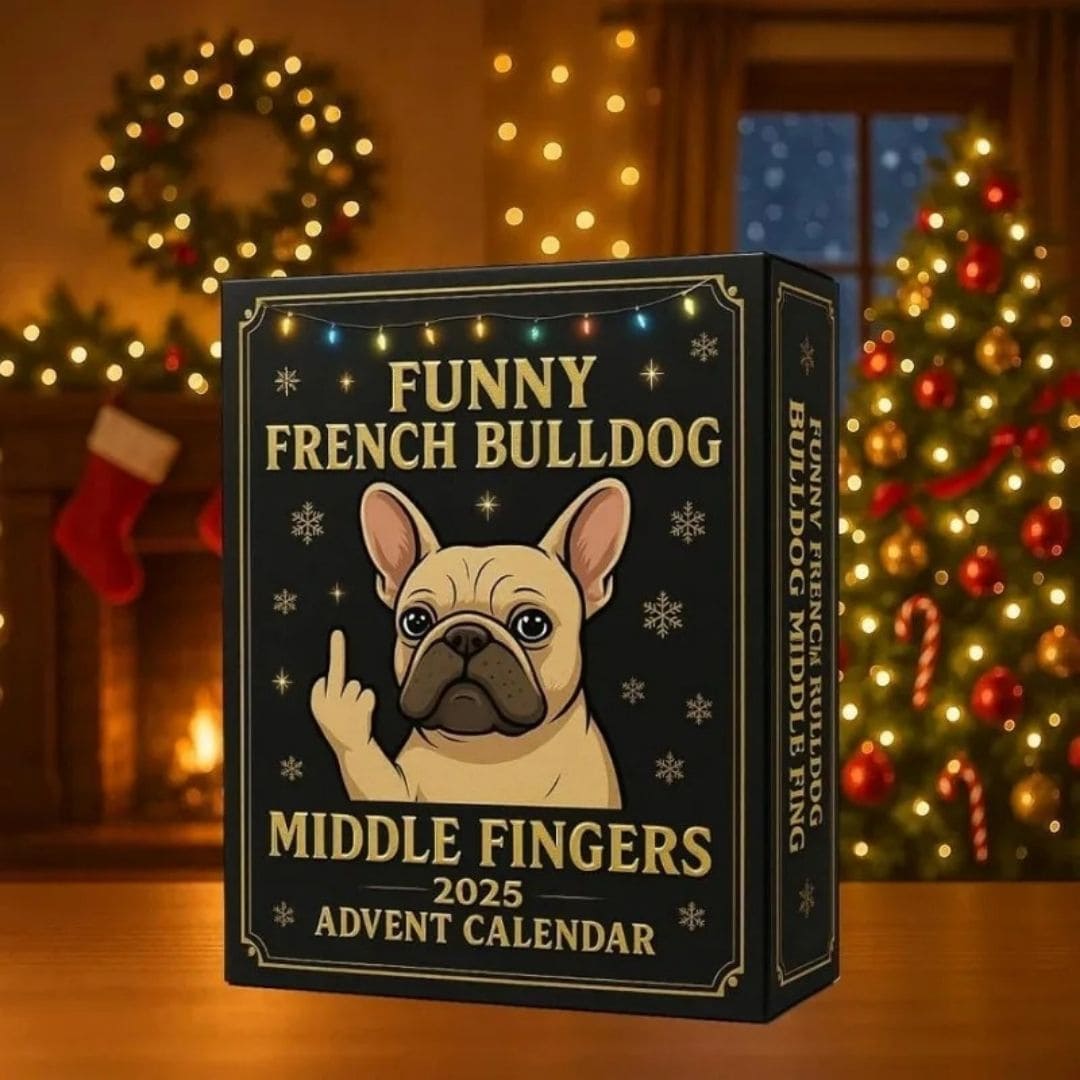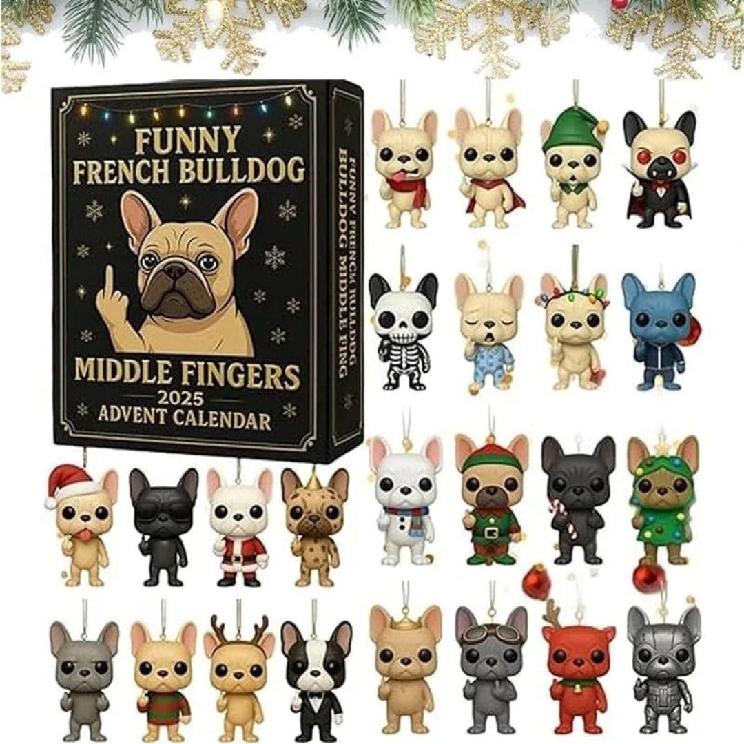 Chaque jour, une figurine superbement illustrée, révèle un bouledogue français en situation cocasse… avec un petit doigt levé pour faire passer le message !