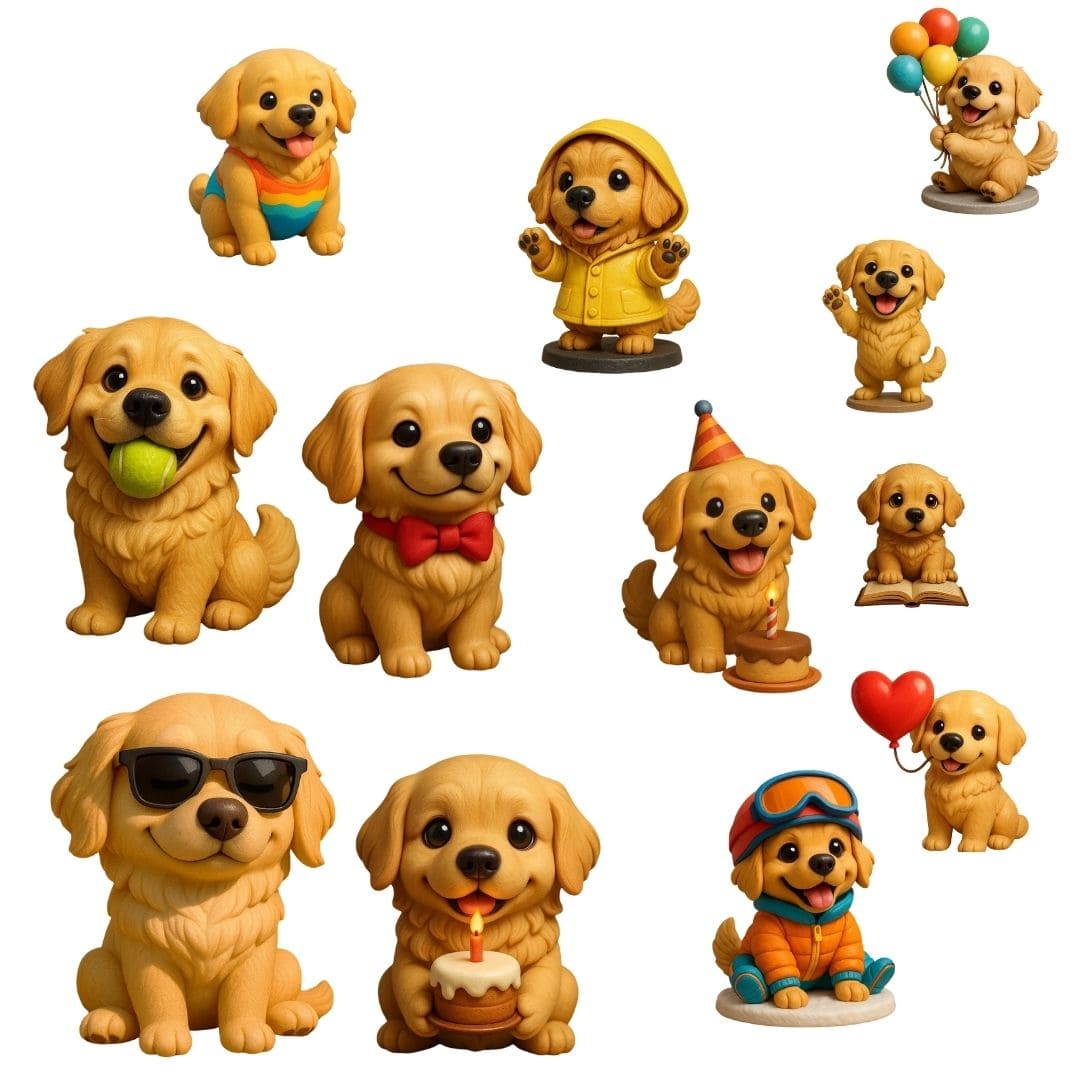 Chaque jour dévoile une nouvelle figurine Golden Retriever, chacune avec une pose ou un thème différent (fête, pluie, accessoire, ballon, etc.) Ces petites pièces décoratives peuvent être accrochées au sapin, disposées sur une étagère ou intégrées à une mise en scène festive.
