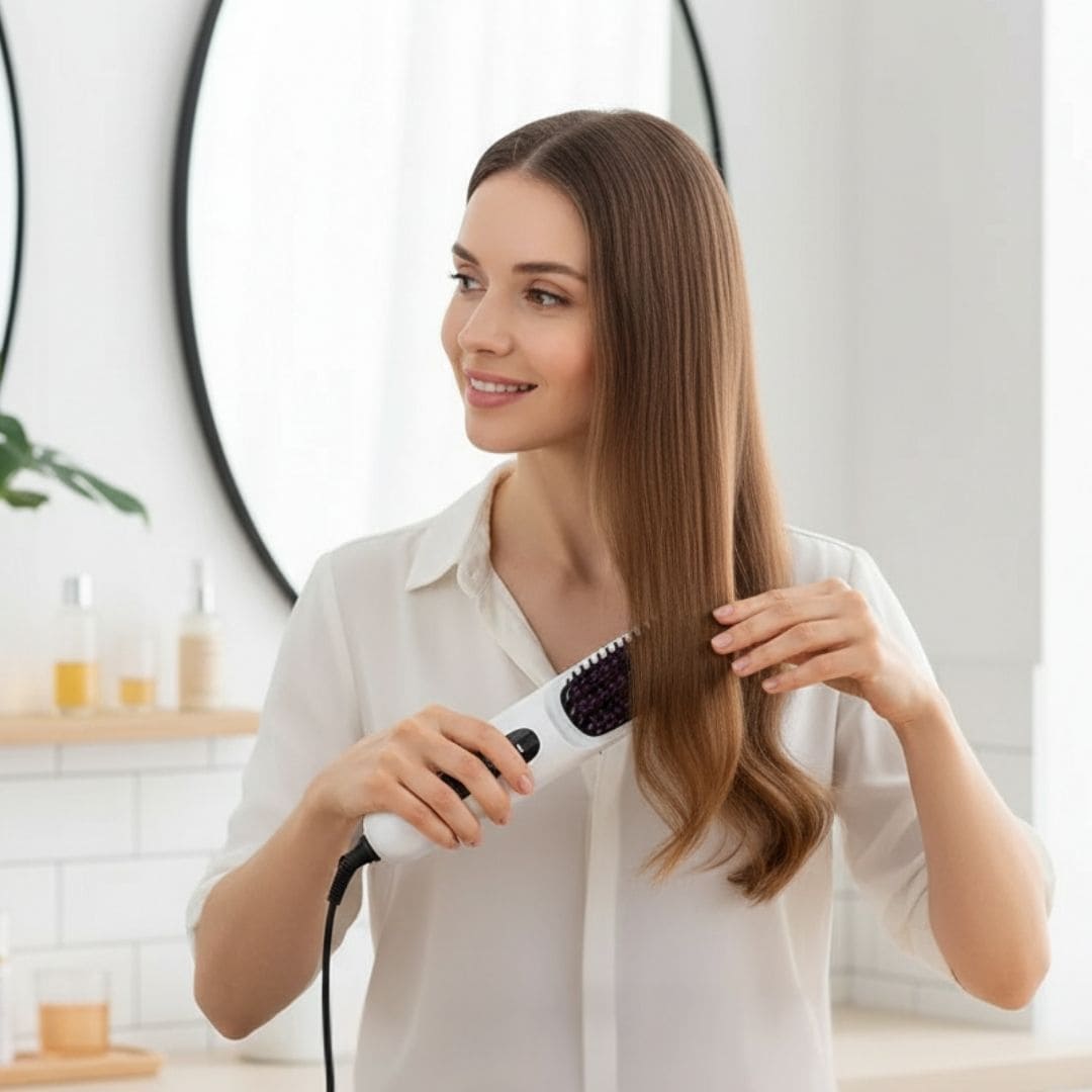 Cette brosse est conçue pour allier efficacité et sécurité : chauffage contrôlé, technologie ionique sans danger pour les cheveux, format portable et rechargeable. Elle convient à tous les types de cheveux et permet d’obtenir un lissage professionnel sans risque de surchauffe.